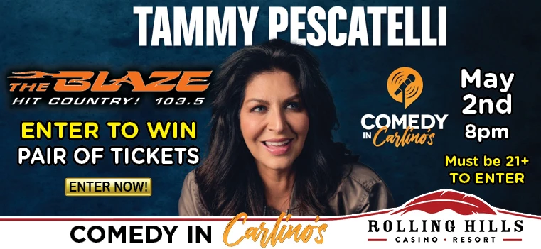 Qualify to win a pair of tickets to Tammy Pescatelli -comedy at Rolling Hills Casino Resort / Comedy in Carlinos, in Corning.